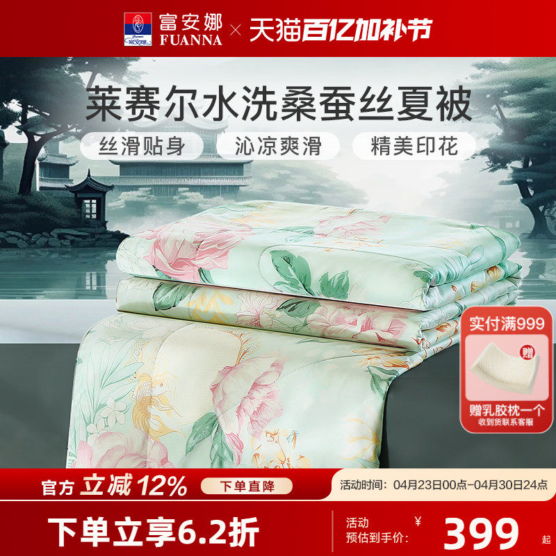 富安娜蚕丝夏凉被进口莱赛尔天丝夏被夏季薄被子双人可水洗空调被