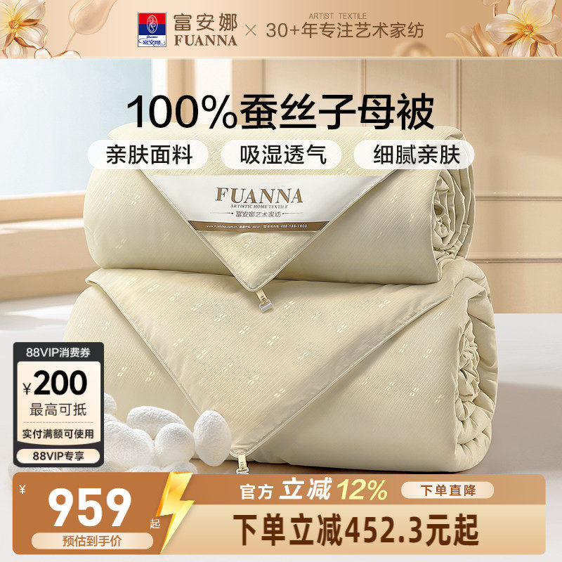 富安娜100%蚕丝被空调被春秋被四季通用子母被二合一被芯单人双人