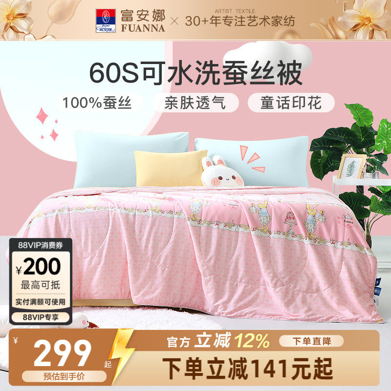 富安娜儿童蚕丝被子夏凉被夏季A类面料学生宿舍60S长绒棉空调被芯