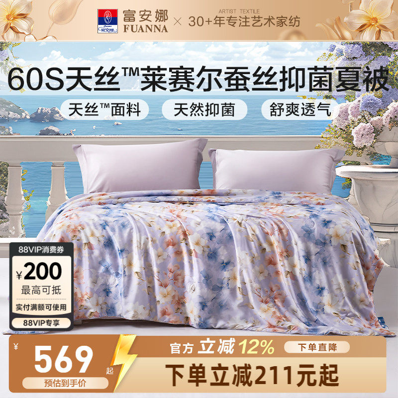 富安娜60S天丝被子夏被蚕丝莱赛尔空调被春秋夏季被芯薄款夏凉被