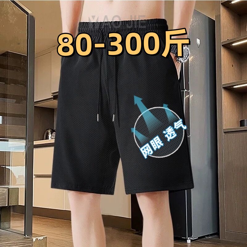 夏季冰丝网眼短裤男薄款透气防晒速干裤工地干活打底衫胖子空调裤