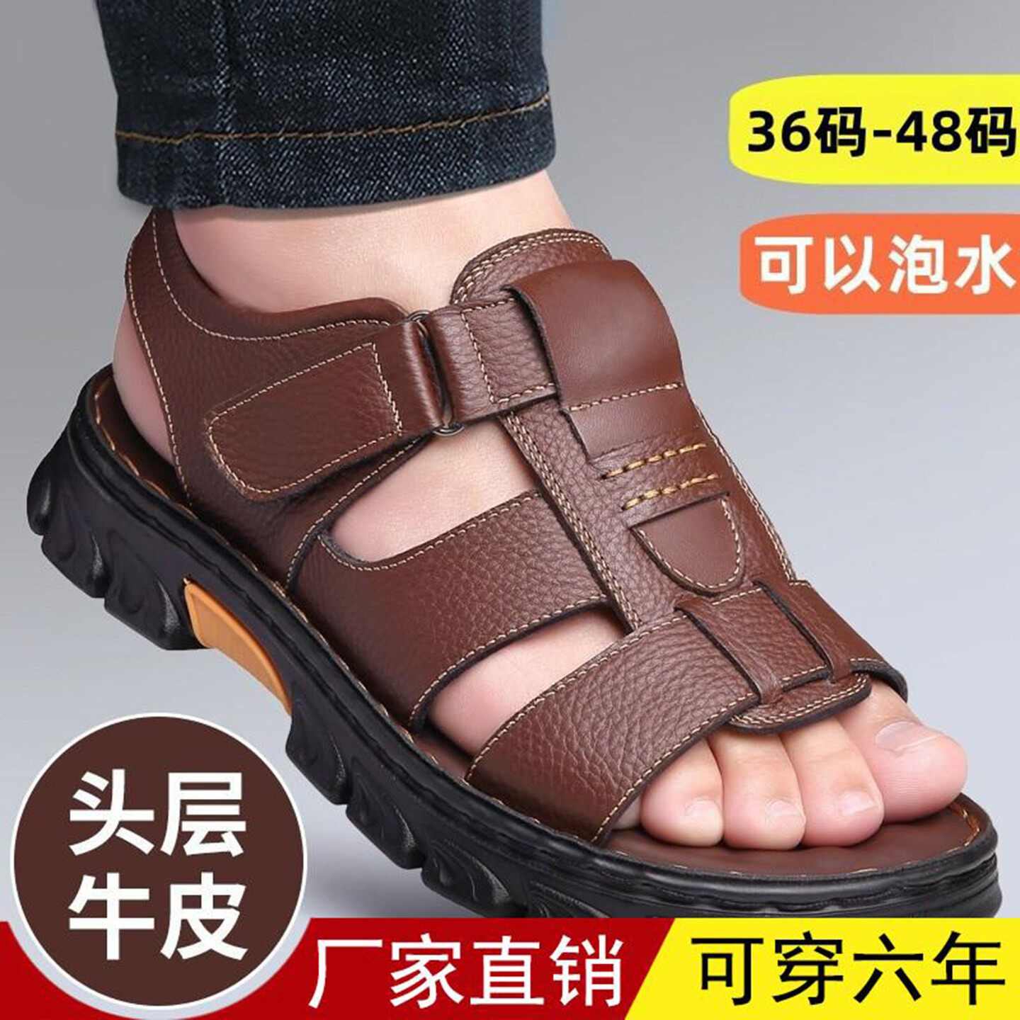 凯丽镂空网面凉鞋2026夏季男士真皮软底软面沙滩鞋防滑耐磨空调a3