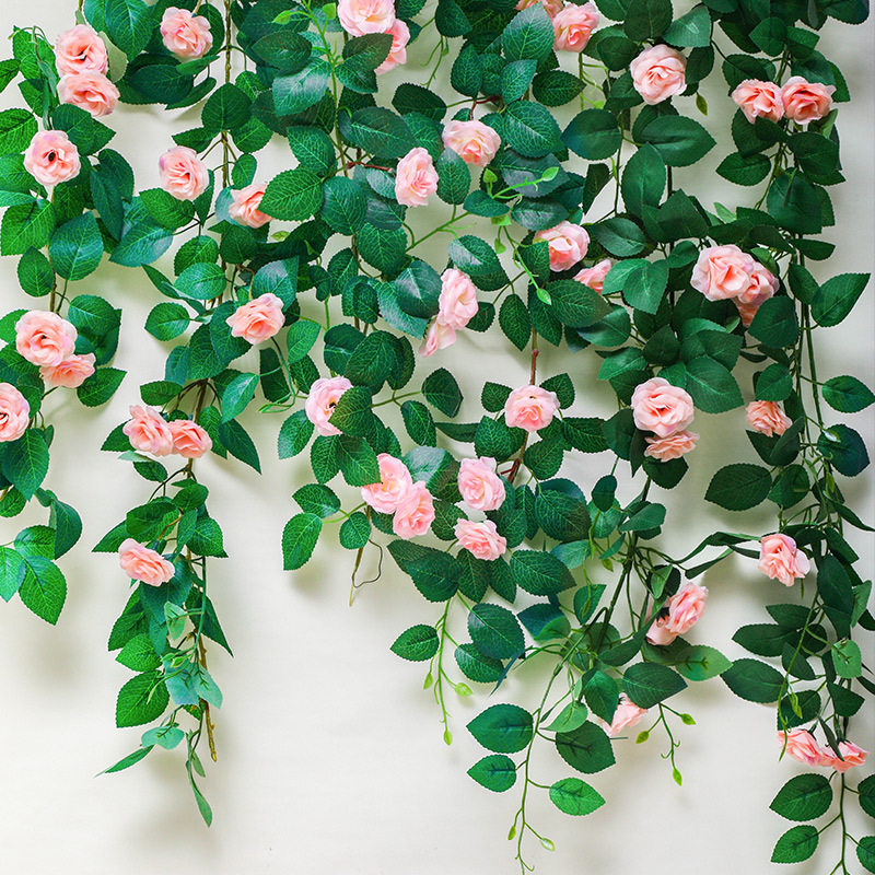 仿真花藤条装饰空调管道遮挡缠绕墙面吊顶叶绿植蔷薇玫瑰假花藤蔓