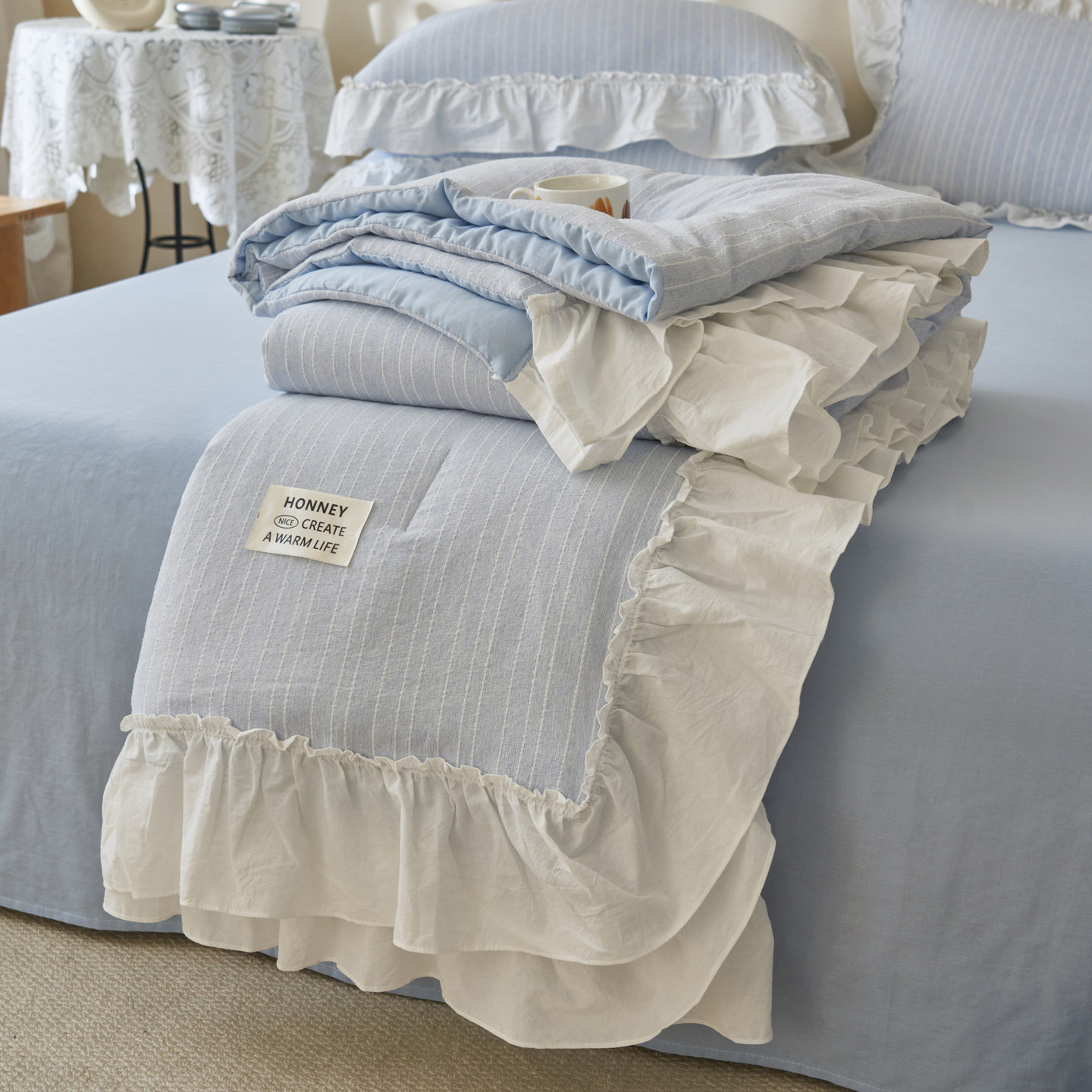 荷叶花边夏被四件套单人宿舍空调被双人可机洗夏天薄款被子夏凉被