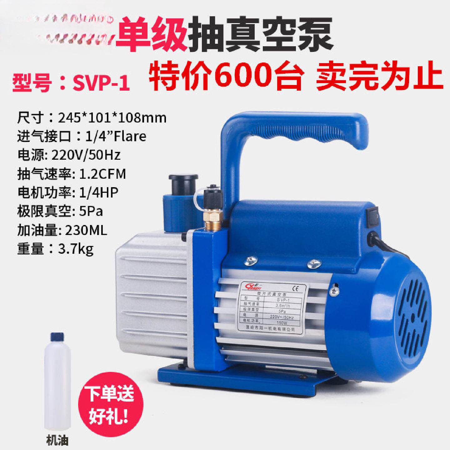 阳一空调真空泵1/2/3/4升小型抽气空调抽气泵高真空旋片式泵压屏