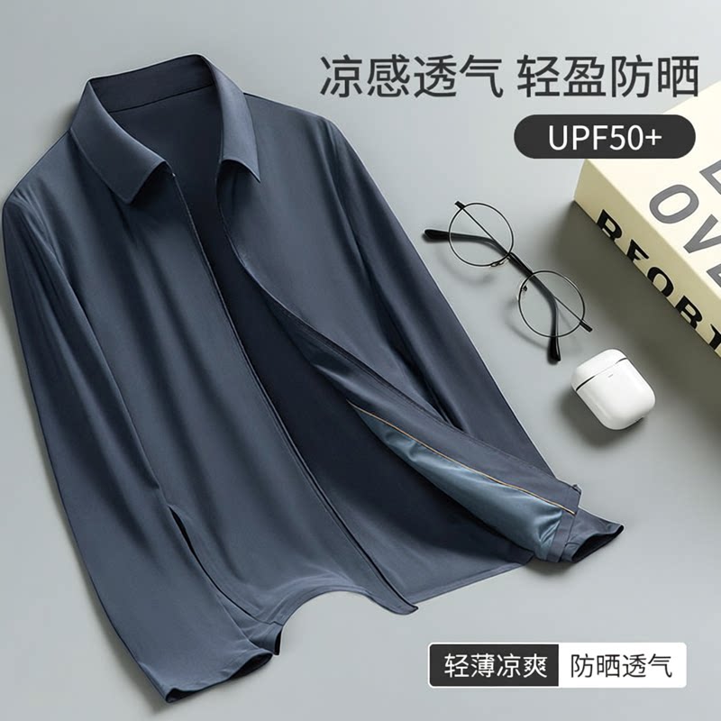 【防晒空调夹克】老爷车夏季翻领商务行政男凉感透气防晒衣男款