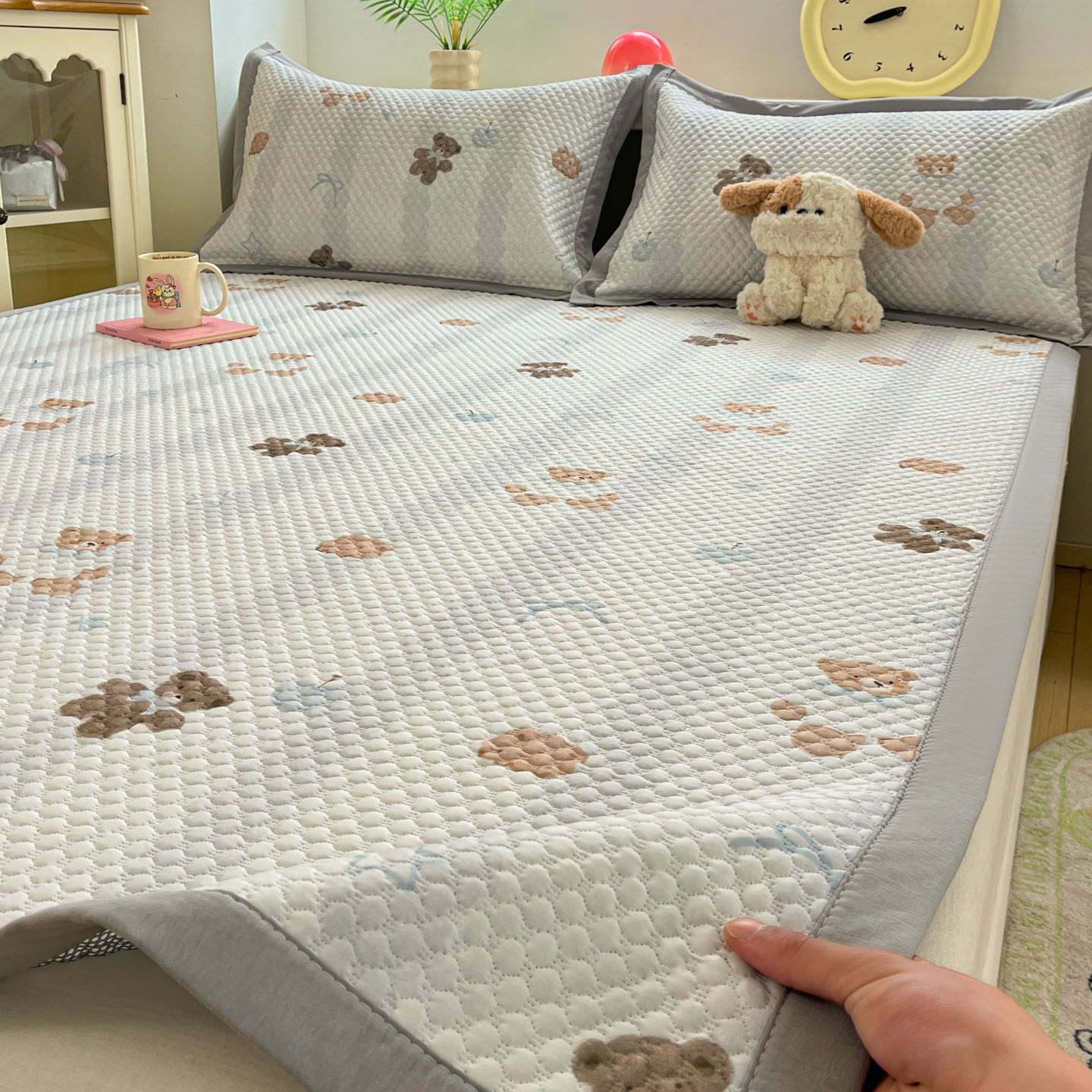 A类卡通冰豆豆凉席夏季冰丝席2025新款夏天空调软席可机洗床笠款