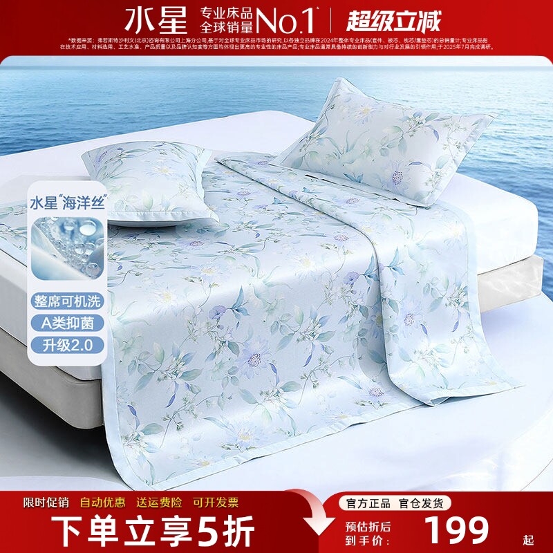 水星家纺凉席三件套A类抑菌凉感冰丝席家用宿舍夏季空调席可机洗