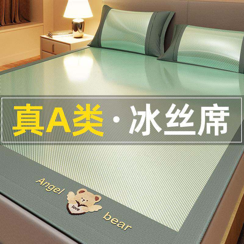 A类夏天冰丝凉席三件套夏季可机洗床单床笠款空调软席子家用草席