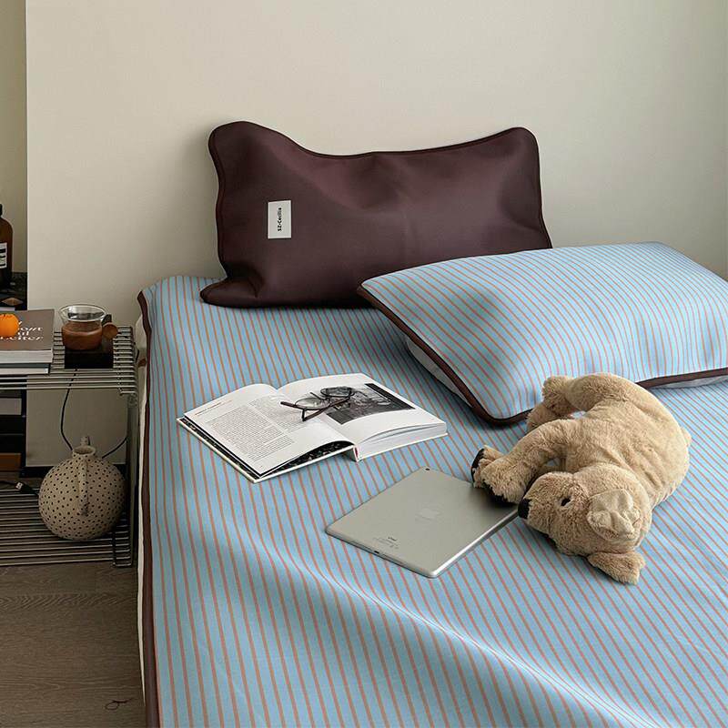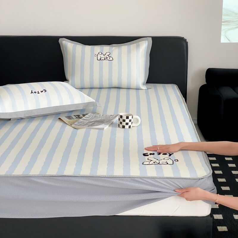 夏季高级条纹冰丝凉席三件套柔软凉感小清新可水洗空调席