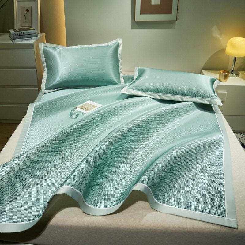 觉西施1800D碳光冰丝凉席三件套家用夏季席子可水洗空调席可折叠