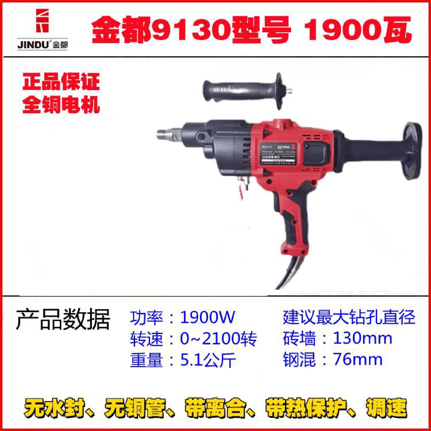 鼎坚3130手持机无水封手抱机带离合调速水钻机水电开孔空调打孔机