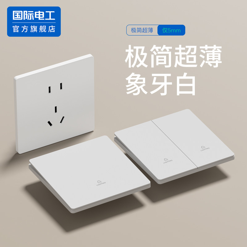 国际电工官方墙壁开关插座面板家用超薄哑光86型白色一开五孔空调