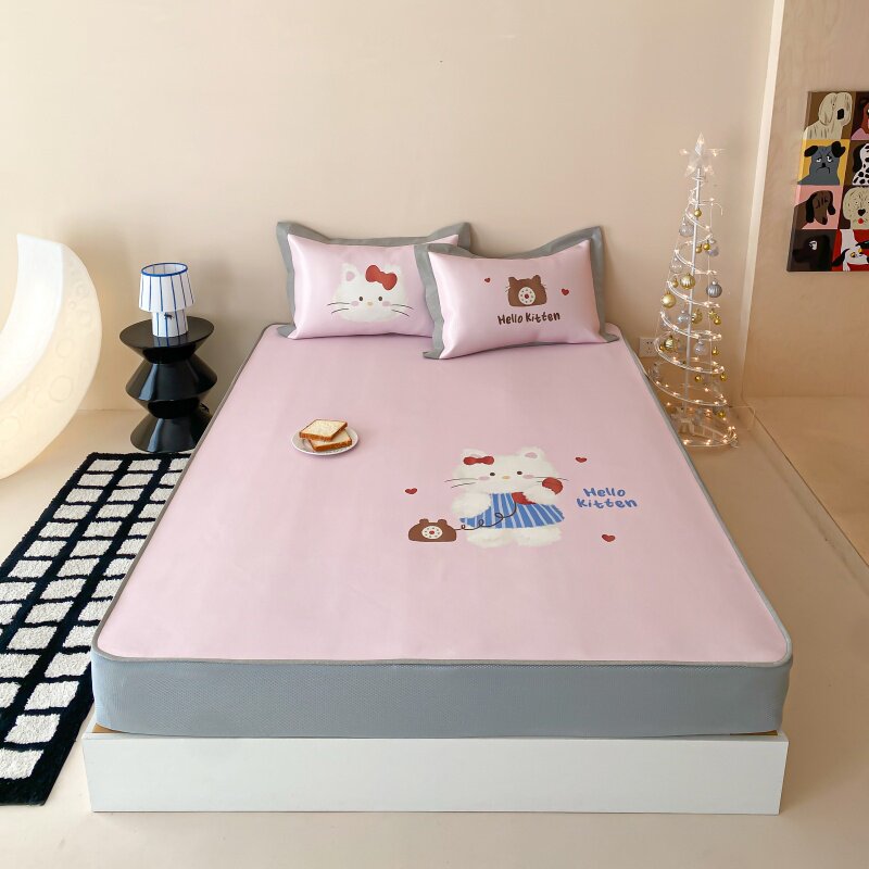 可爱kt猫乳胶凉席夏季冰丝席床单宿舍单人空调席可机洗软席