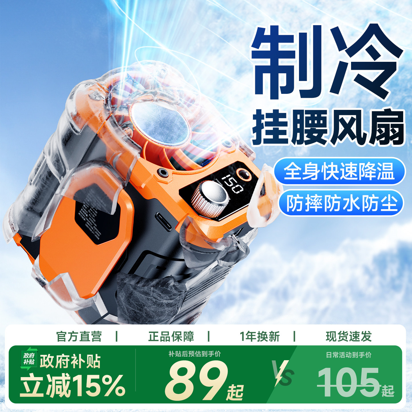 挂腰风扇随身便携式夹腰间消暑降温高温户外工地充电强力小共田挂脖夏天季厨房制冷空调衣服穿戴加长续航