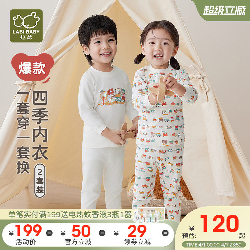 拉比儿童内衣校服内搭套装家居睡衣2套装纯棉秋衣秋裤宝宝空调服