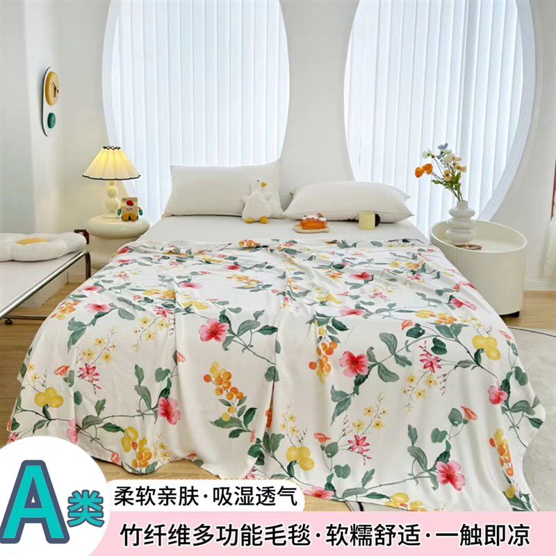 类竹纤维毛毯印花多功能午睡毯少儿沙发毯夏季毛毯单双人空调毯