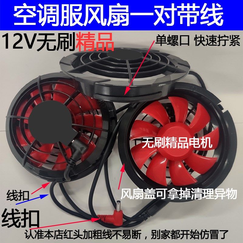 空调服专用12伏无刷风扇一对带线大风12V配件风扇衣服降温2只装