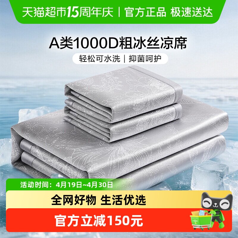 富安娜1000D冰丝席凉席可水洗A类抑菌可折叠空调软席单双人夏季