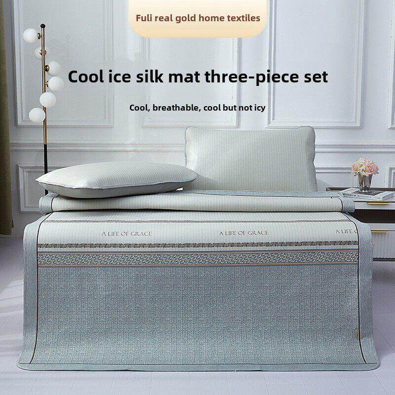 新款直销源头冰丝凉席三件套通用款空调冰丝席礼品会销席子可折叠