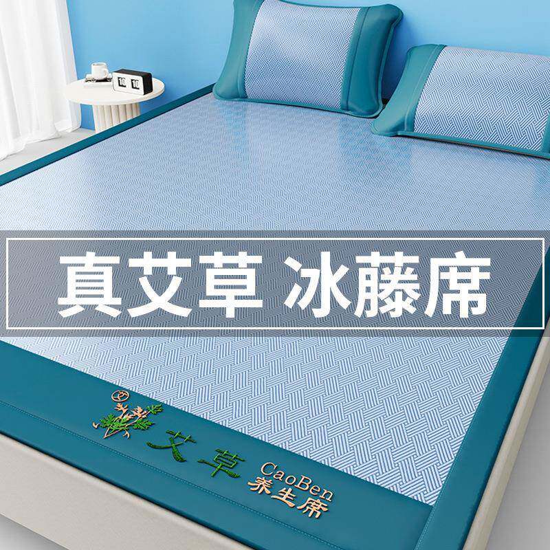 夏季爆款艾草凉席冰丝席三件套可折叠水洗机洗单人学生宿舍空调席