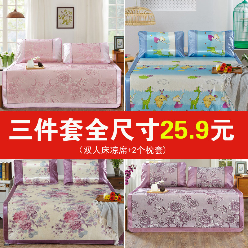 冰丝凉席可水洗夏季空调软凉席子三件套双人1.8夏天1.5米床单
