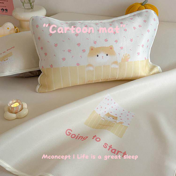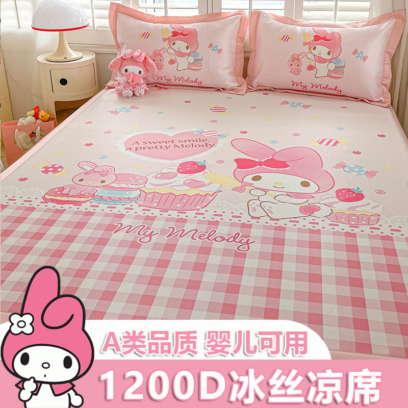 美乐蒂儿童冰丝凉席三件套女孩夏季空调席可水洗折叠卡通上下床席