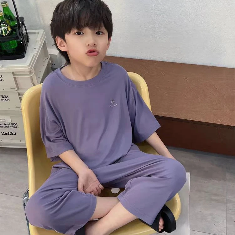 儿童夏季莫代尔家居服中大童九分裤睡衣宝宝休闲短袖空调服两件套