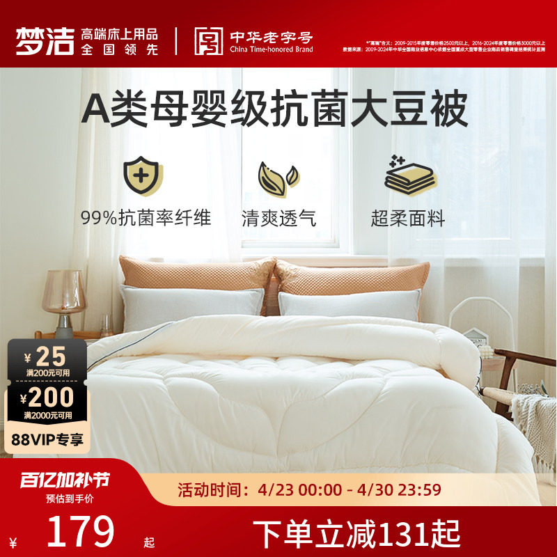 梦洁家纺大豆纤维被子学生宿舍单人被芯抗菌棉被保暖空调被春秋款