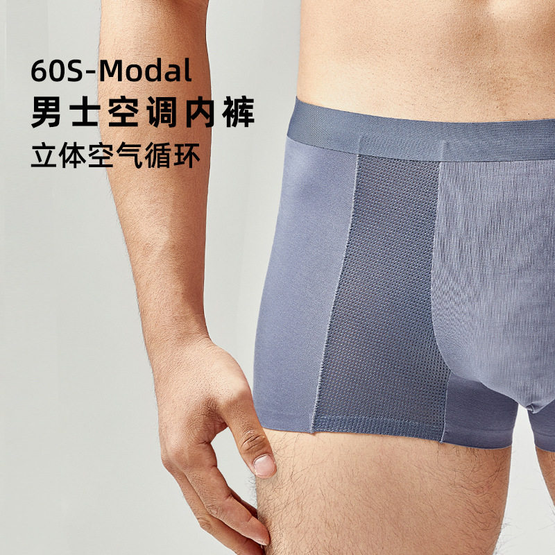 男士内裤男生冰丝平角网孔透气凉感空调内裤夏季薄款四角