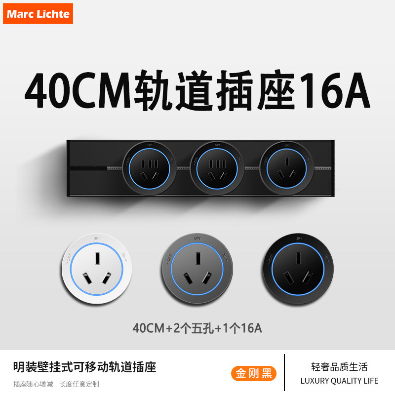 家用墙壁明装空调16A轨道插座40cm可移动热水器大功率排插滑轨