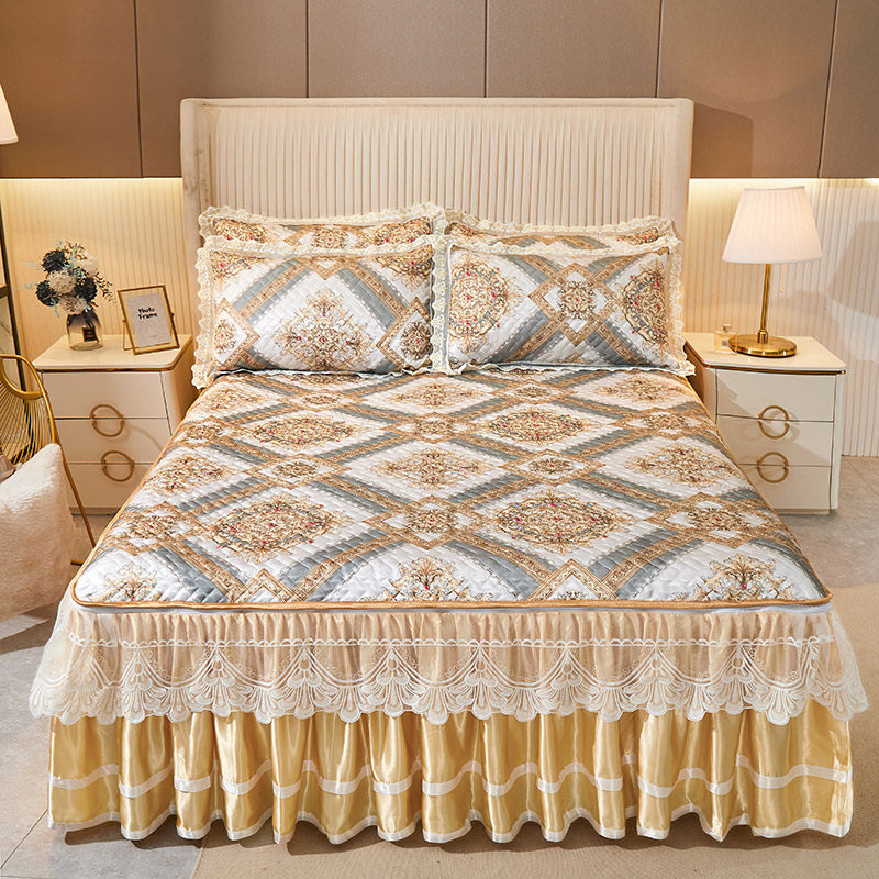 韩式蕾丝冰丝席凉席三件套夏季床罩空调软席可水洗可折叠床裙席子