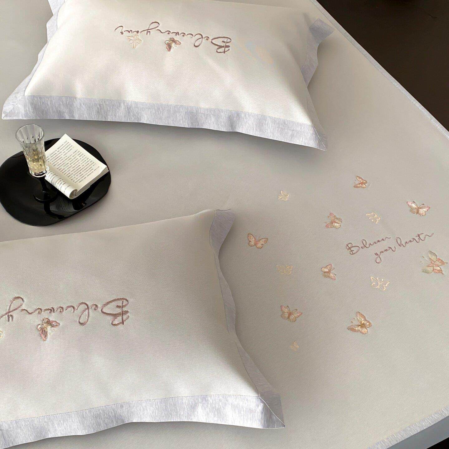 A类夏季抗菌冰丝席三件套田园刺绣蝴蝶床笠款裸睡凉感空调凉席1.8