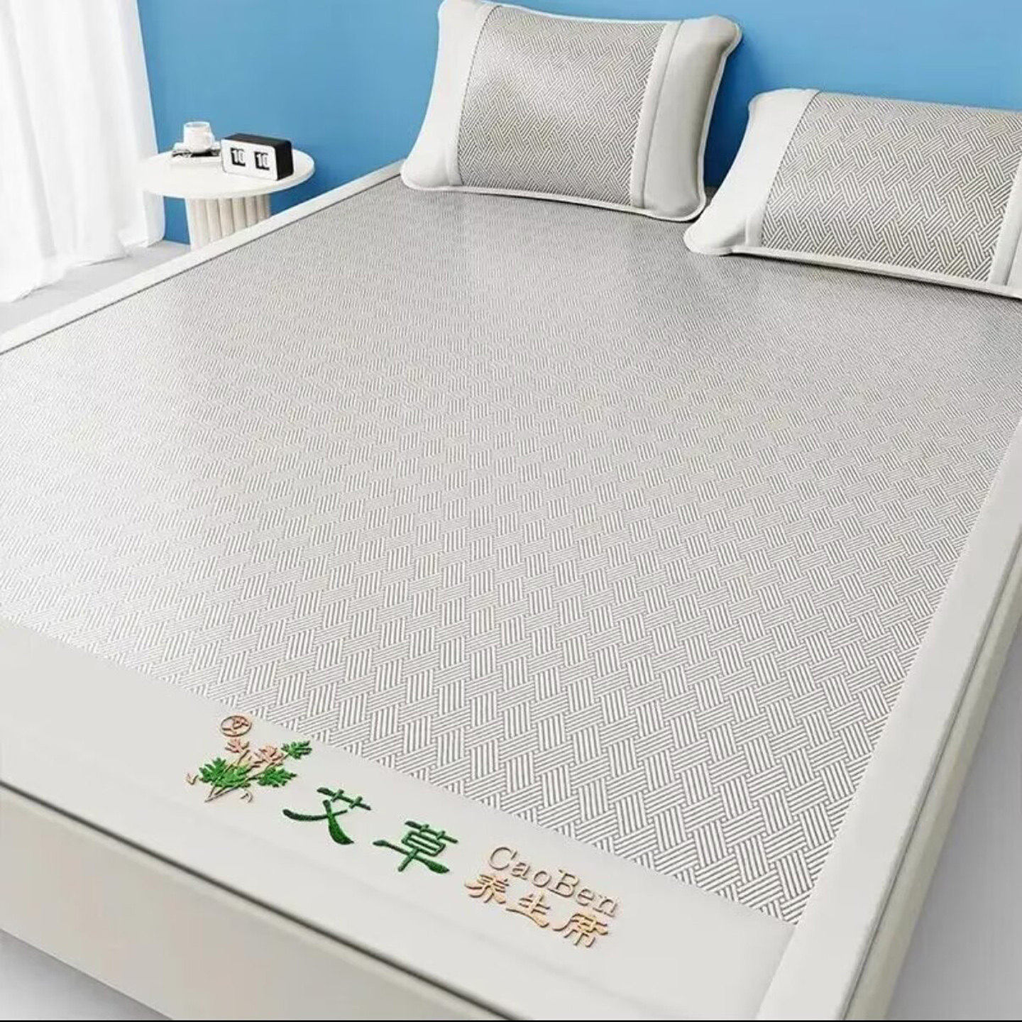 大禾塘坚泉艾草冰丝藤席三件套家用夏季双人空调软席床笠款竹席a4