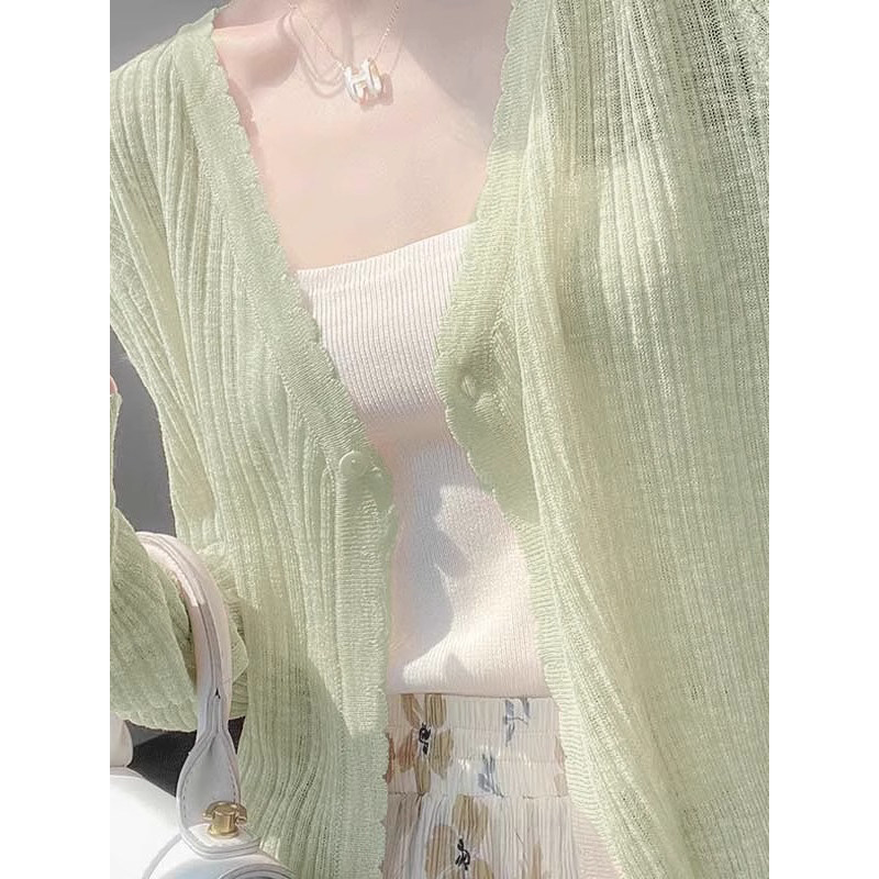 薄荷漫波绿色防晒针织开衫女夏季外搭薄款罩衫冰丝空调衫上衣外套