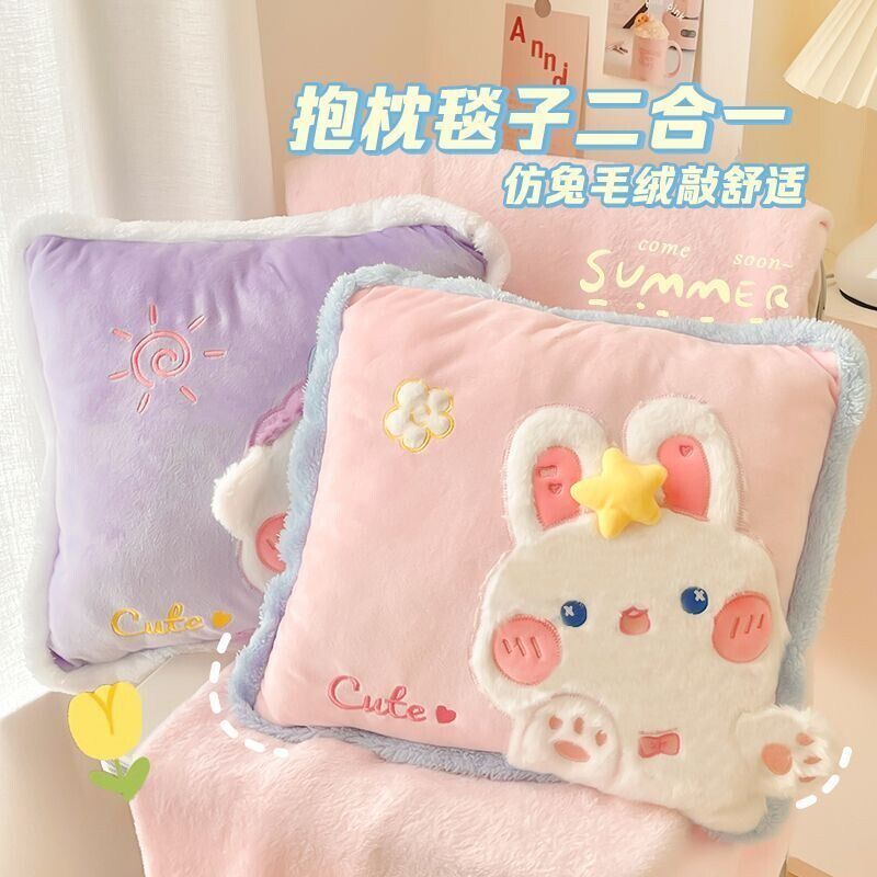 卡通小兔子抱枕被子两用折叠靠枕毯二合一空调被兔叽