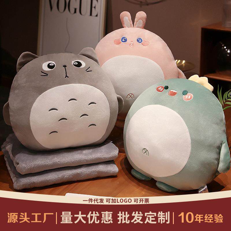 卡通可爱空调毯子三合一办公室抱枕被刺绣汽车靠垫沙发榻榻米