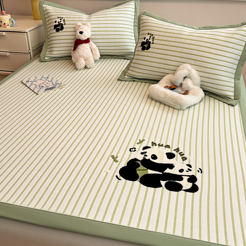 2026新款提花卡通毛巾绣凉席三件套冰丝凉感薄款空调席夏凉席子
