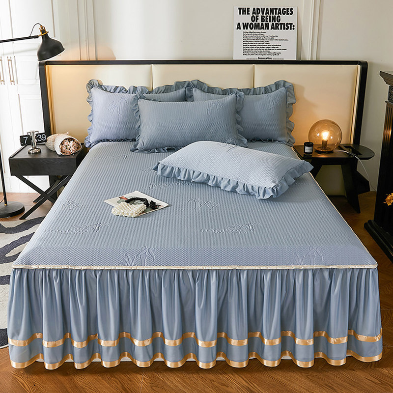 冷感冰豆豆凉席三件套床裙款夏季养生冰丝空调席可水洗折叠软席子