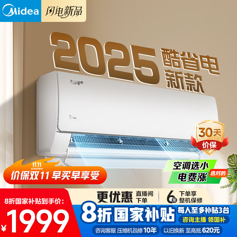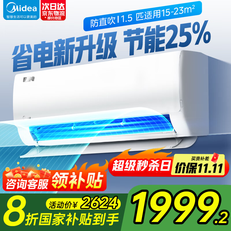 美的(Midea)酷省电 爆款推荐 空调挂机 大1.5匹新一级能效全直流变频节能低噪音防直吹 以旧换新 国家补贴20% 大1.5匹 一级能效 酷省电2025款