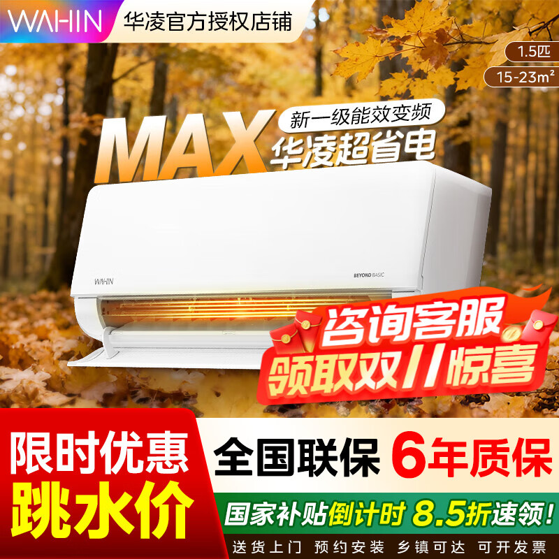 华凌空调大1.5匹 超省电MAX 新一级能效 变频冷暖 电量查询 省电家用挂机空调 以旧换新家电补贴 1.5匹 一级能效 新品超省电Max