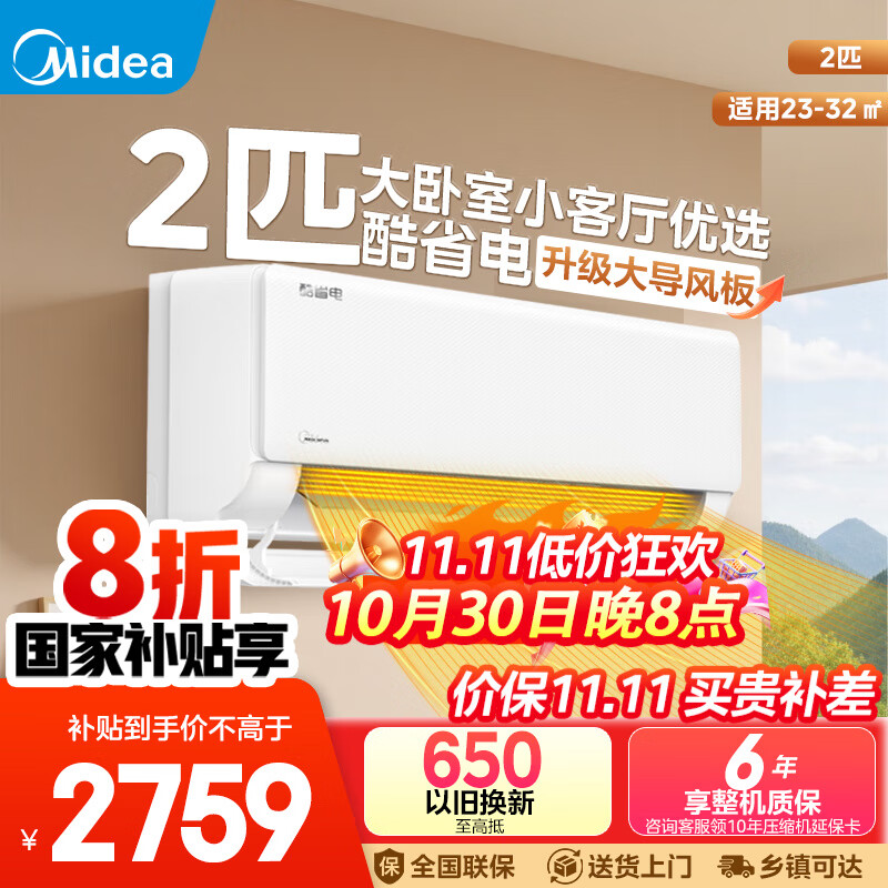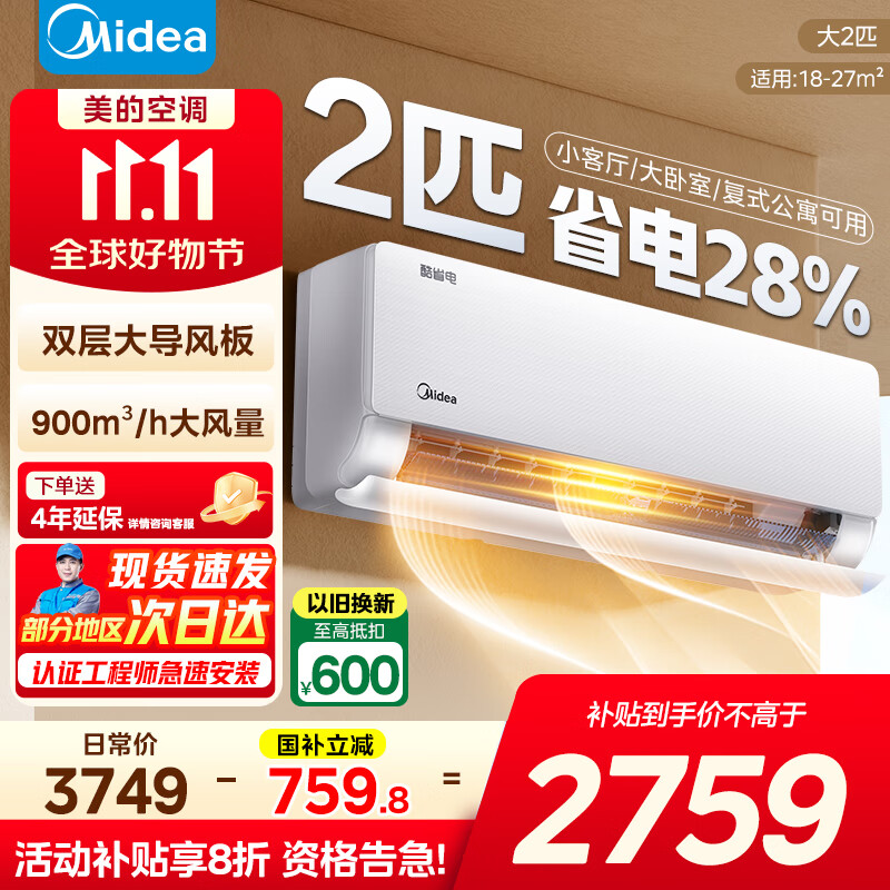 美的空调 2匹 酷省电 新一级能效变频冷暖 节能省电卧室空调 壁挂式客厅 以旧换新 家电国家补贴20% 2匹 一级能效 酷省电大挂 | 咨询客服更优惠