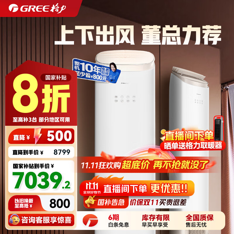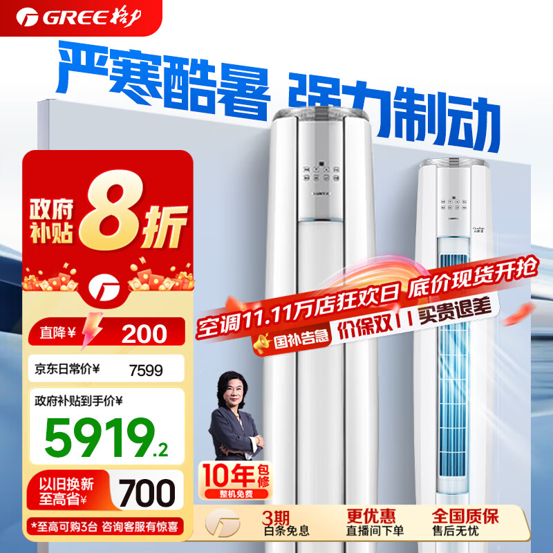 格力(GREE)空调柜机王者/京致上下送风 防直吹 新1级变频冷暖冷酷外机 衡温客厅节能立式空调家电国家补贴20% 3匹 一级能效 (72518)FNhAb-B1