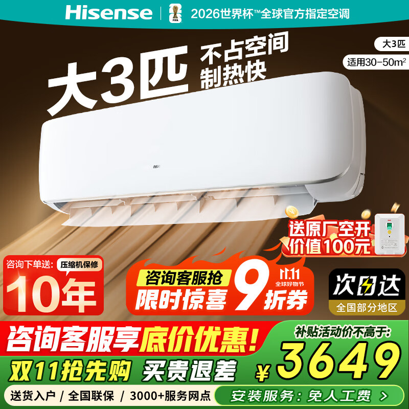 海信(Hisense)大3匹 易省电E370 AI省电 速冷热 新一级能效 大挂机 国家补贴 客厅壁挂变频空调KFR-72GW/E370-X1
