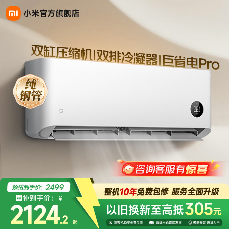 小米(MI)空调1.5匹 巨省电Pro 超一级能效 变频冷暖智能自清洁壁挂式卧室空调挂机纯铜管 重磅新品 2026款 巨省电pro 大1.5匹 2026款