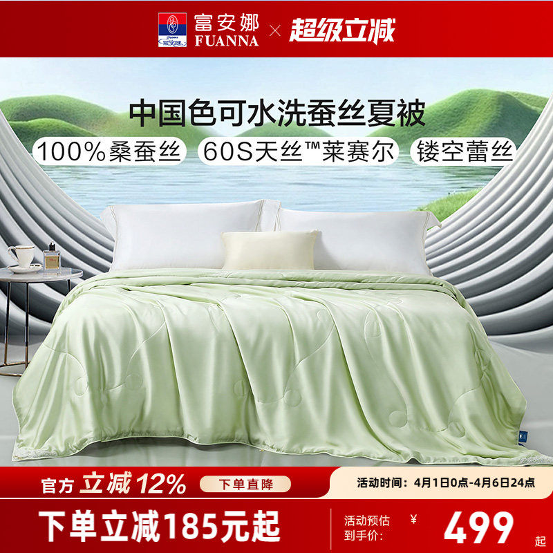 富安娜被子可水洗桑蚕丝被芯夏凉被60S天丝莱赛尔夏季薄款空调被
