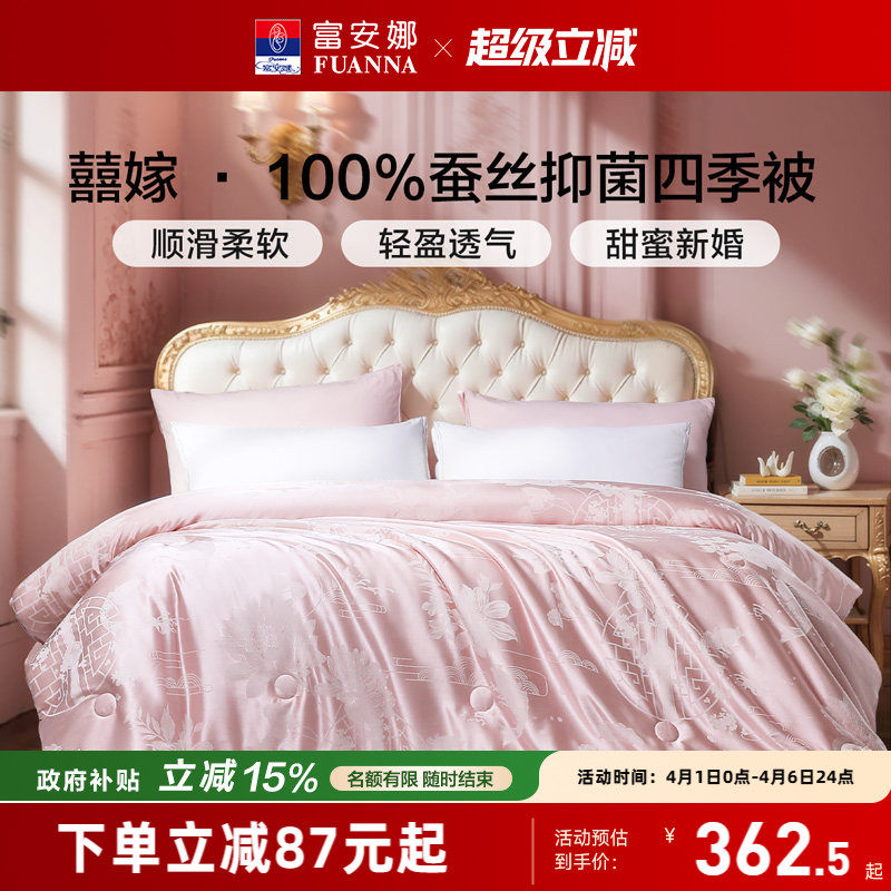 富安娜蚕丝被婚庆空调被二合一子母被四季被冬被结婚陪嫁被子喜被