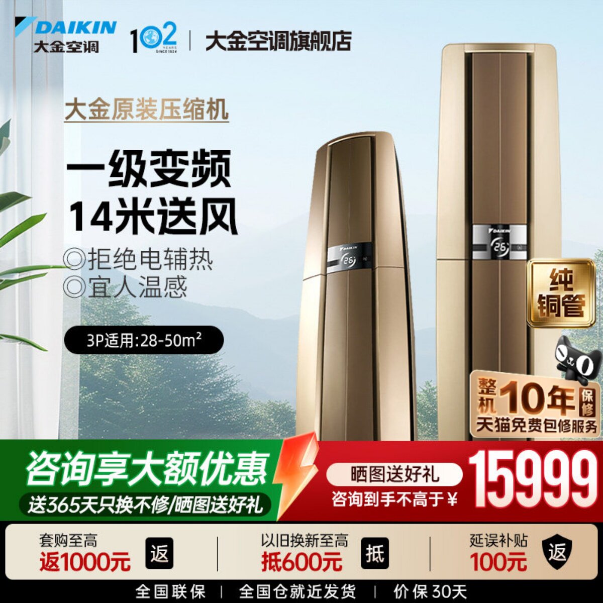 大金空调一级静音3匹立体气流家用变频静音柜机F172金色帕缔能