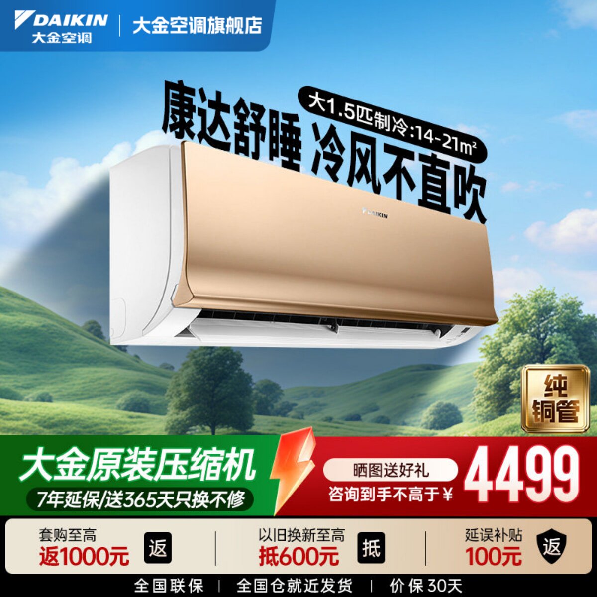 大金空调二级变频大1.5匹康达气流家用冷暖静音挂机S236金