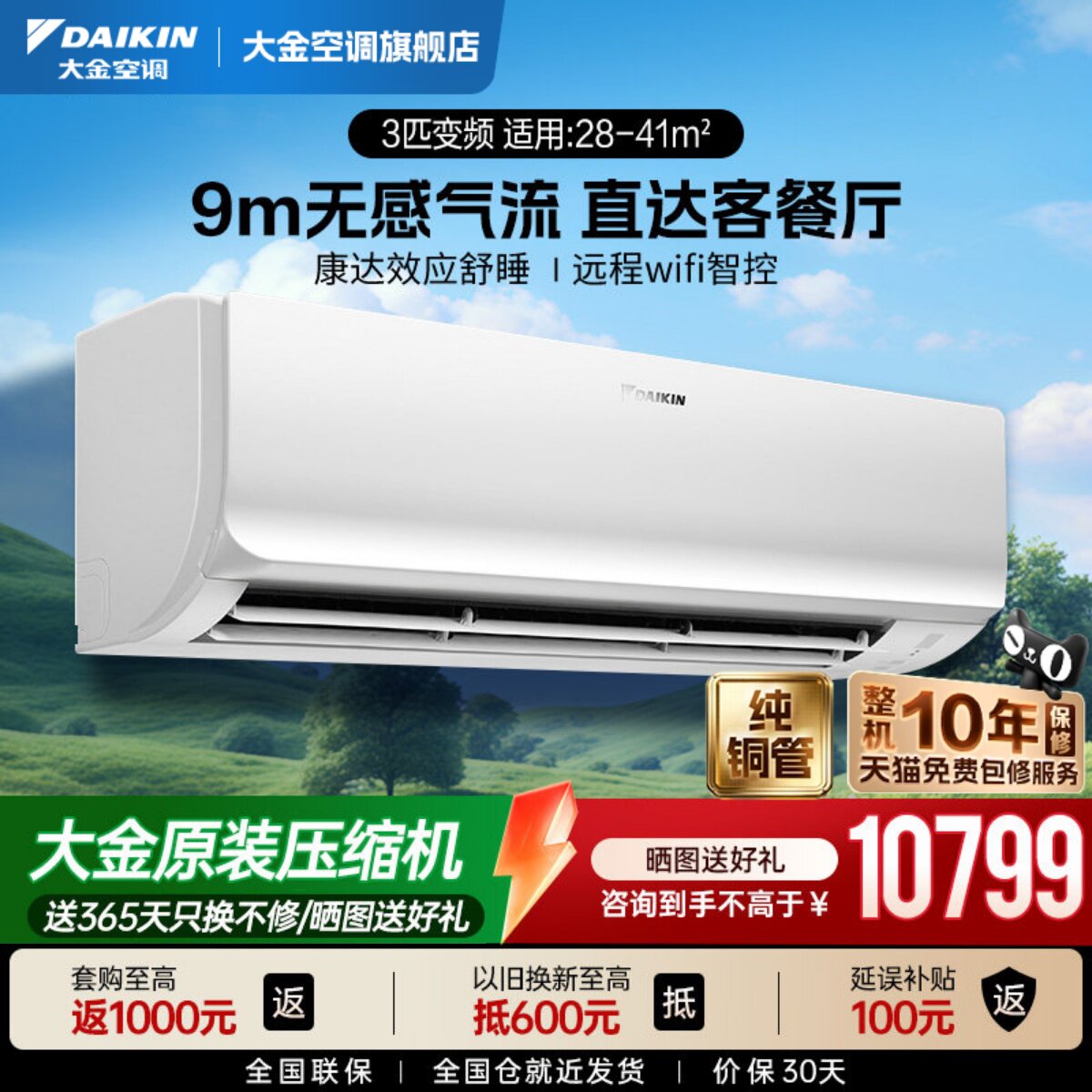 大金空调官旗一级康达变频大3匹WIFI家用冷暖挂机R172白色EMAX7R